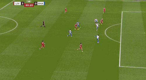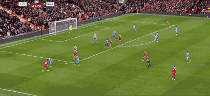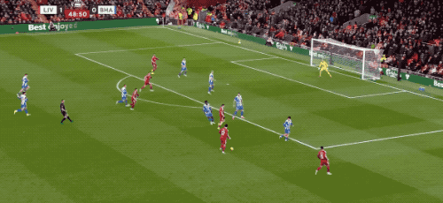 第40分钟,还是来自萨拉赫的传球,基耶萨的射门,被范赫克伸出一脚,完成解围。
